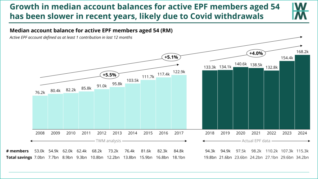 - When analysing how Malaysians are stacking up for retirement, active EPF members aged 54 is the most relevant cohort to examine. Including inactive or younger cohorts to examine aggregate statistics is not meaningful