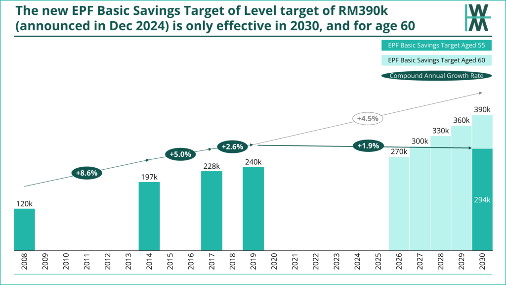 - It is for those aged 60 (whereas the current RM240k target is for those aged 55)
