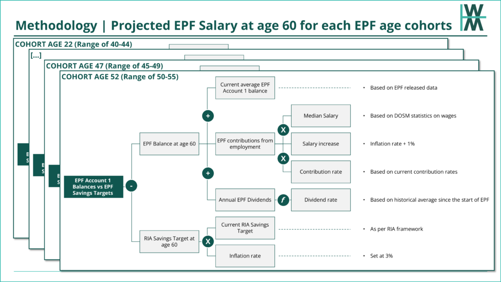 The challenge is that for different EPF age cohorts, their retirement age is different, so the Adequate Savings target would be different, likely increasing over time due to inflation (rising costs of living).