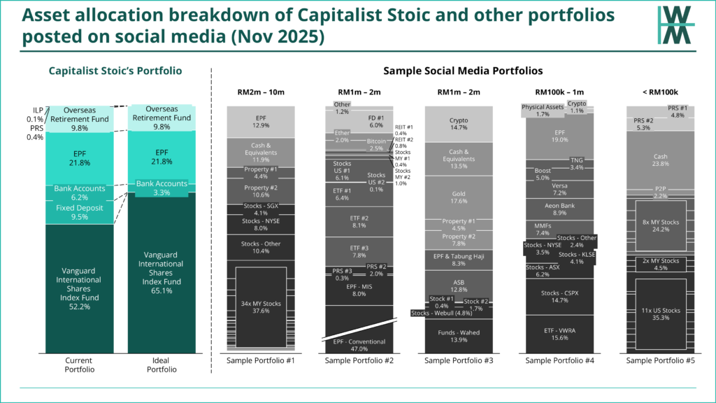 What makes you think my simple Boglehead portfolio isn’t as large as the social media portfolios I’ve sampled? I have 100% conviction in the effectiveness of the simple Boglehead portfolio. Perhaps if/when I reach RM50m, I’ll reconsider other asset types for wealth preservation.
