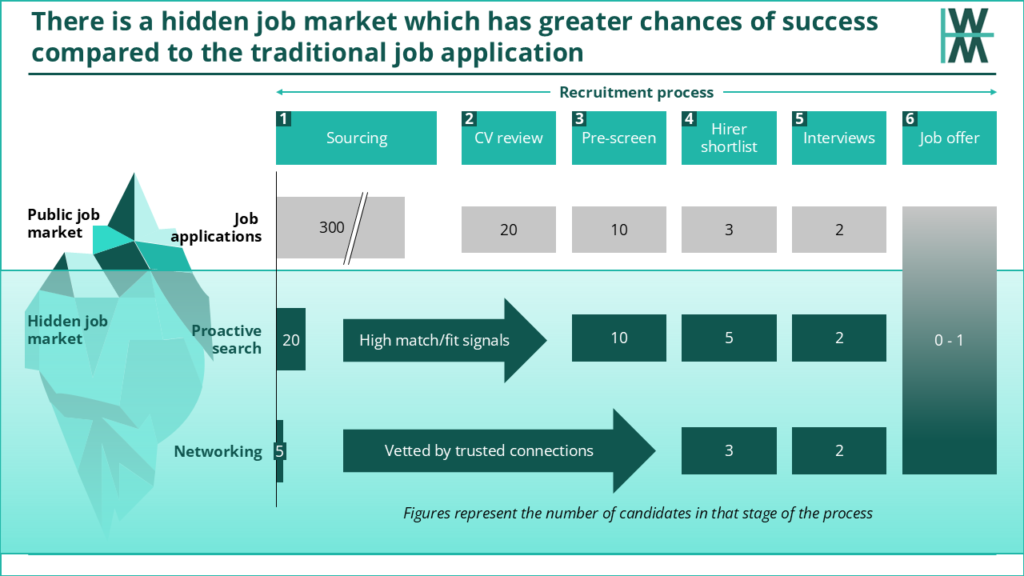 For both candidates and hirers, the hidden job market, comprising both proactive search (known as headhunting in the old days) and networking, is far more effective than traditional job advertisements.