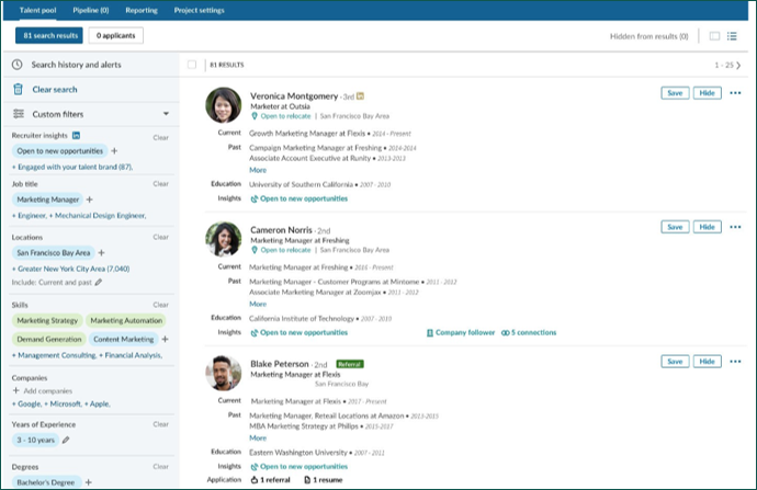 In these instances, many companies take the initiative to search employment platforms for suitable profiles and reach out to them. They may use their own hiring team, an a third-party recruiter to conduct the proactive search.